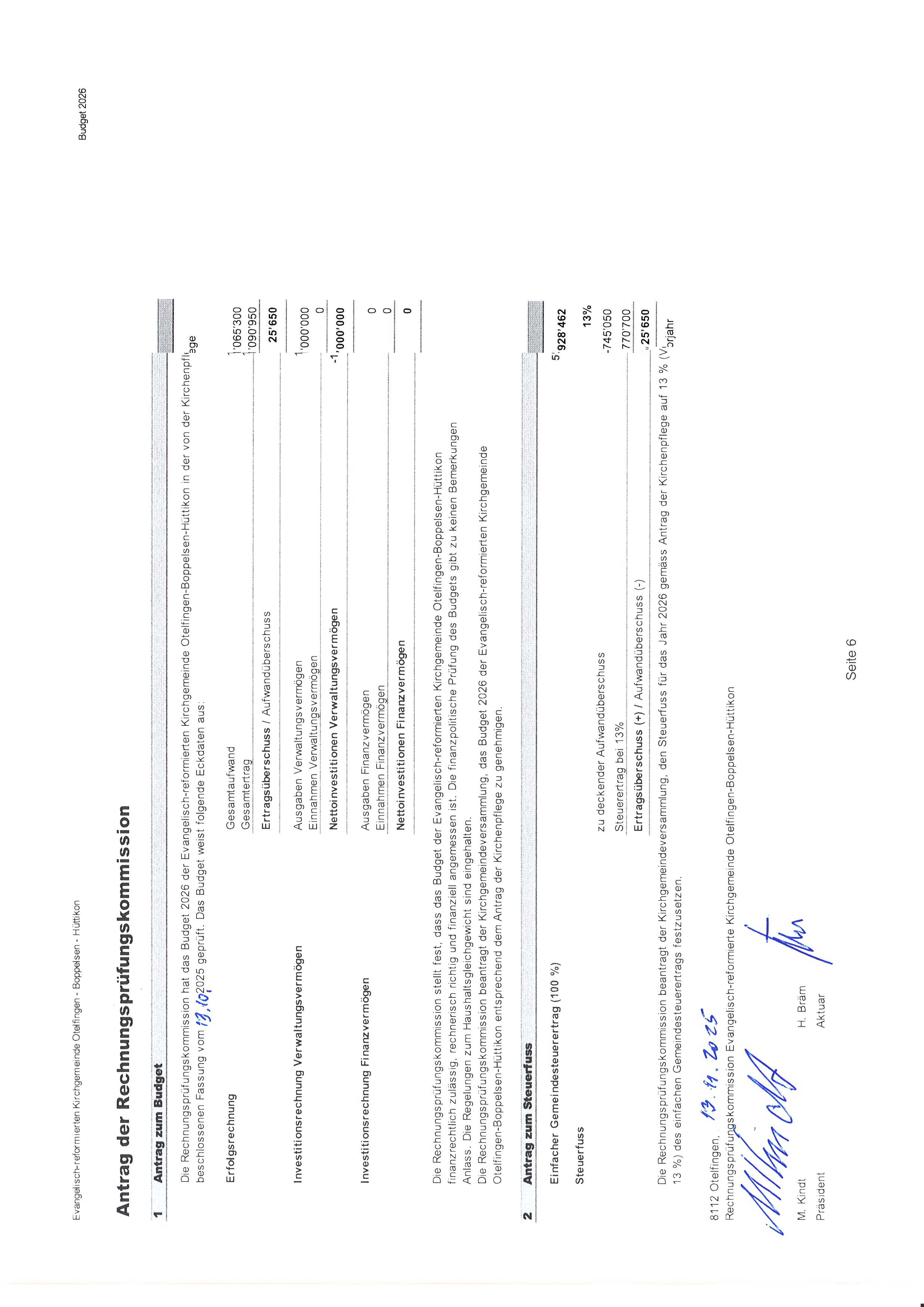 Investitionskredit Sanierung Kirche - Beilagen zum Beleuchtenden Bericht