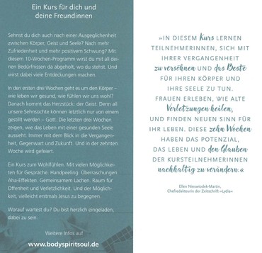 Der Kurs ist kostenlos, aber bitte dich um eine verbindliche und regelmässige Teilnahme, da die Teilnehmerzahl auf höchstens acht Personen begrenzt ist.