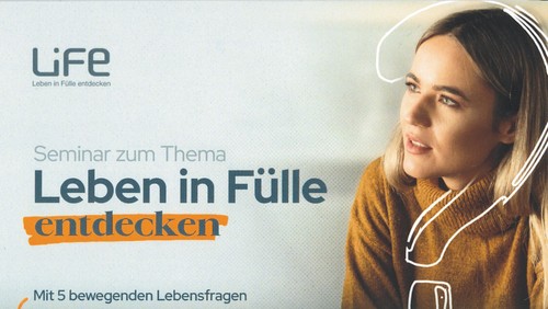 Das Wort "LiFe" steht für eine Aussage von Jesus. Er spricht davon, ein "Leben in Fülle entdecken" zu können, wenn man ihm Platz in seinem Leben gibt. Das LiFe-Seminar umfasst fünf Abende und steht allen offen - gerade auch Menschen, die einmal unverbindlich in das Thema "Gott" hineinschnuppern wollen. Ein erstes Mal wird es an fünf Mittwoch Abenden ab 12.November 2025 durchgeführt.