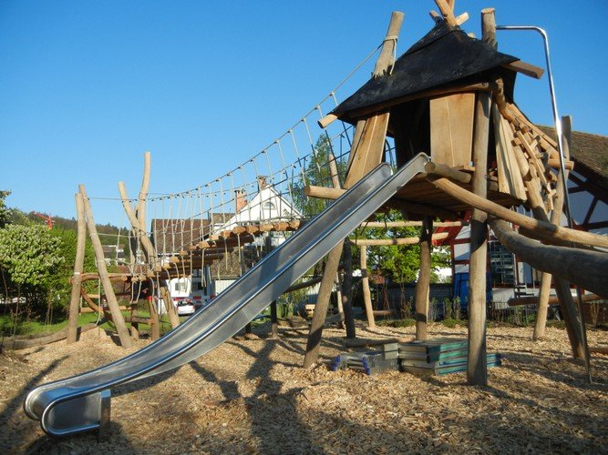 Spielplatz: Der Dorfspielplatz neben dem Café Eden lädt Kinder und Familien zum Spielen und Verweilen ein.